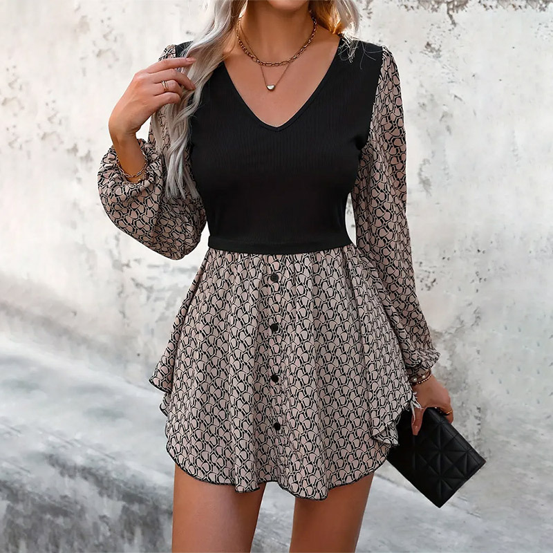 Deep V-hem irregular dress short skirt